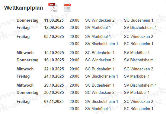 Wettkampfplan und Ergebnistabelle Luftgewehr 2025/2026