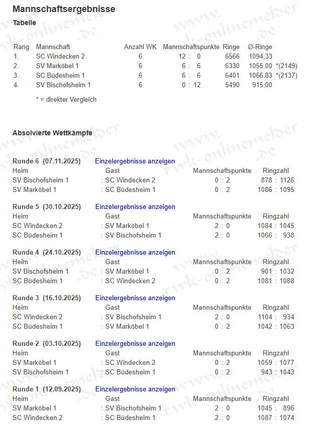 Wettkampfplan und Ergebnistabelle Luftgewehr 2025/2026